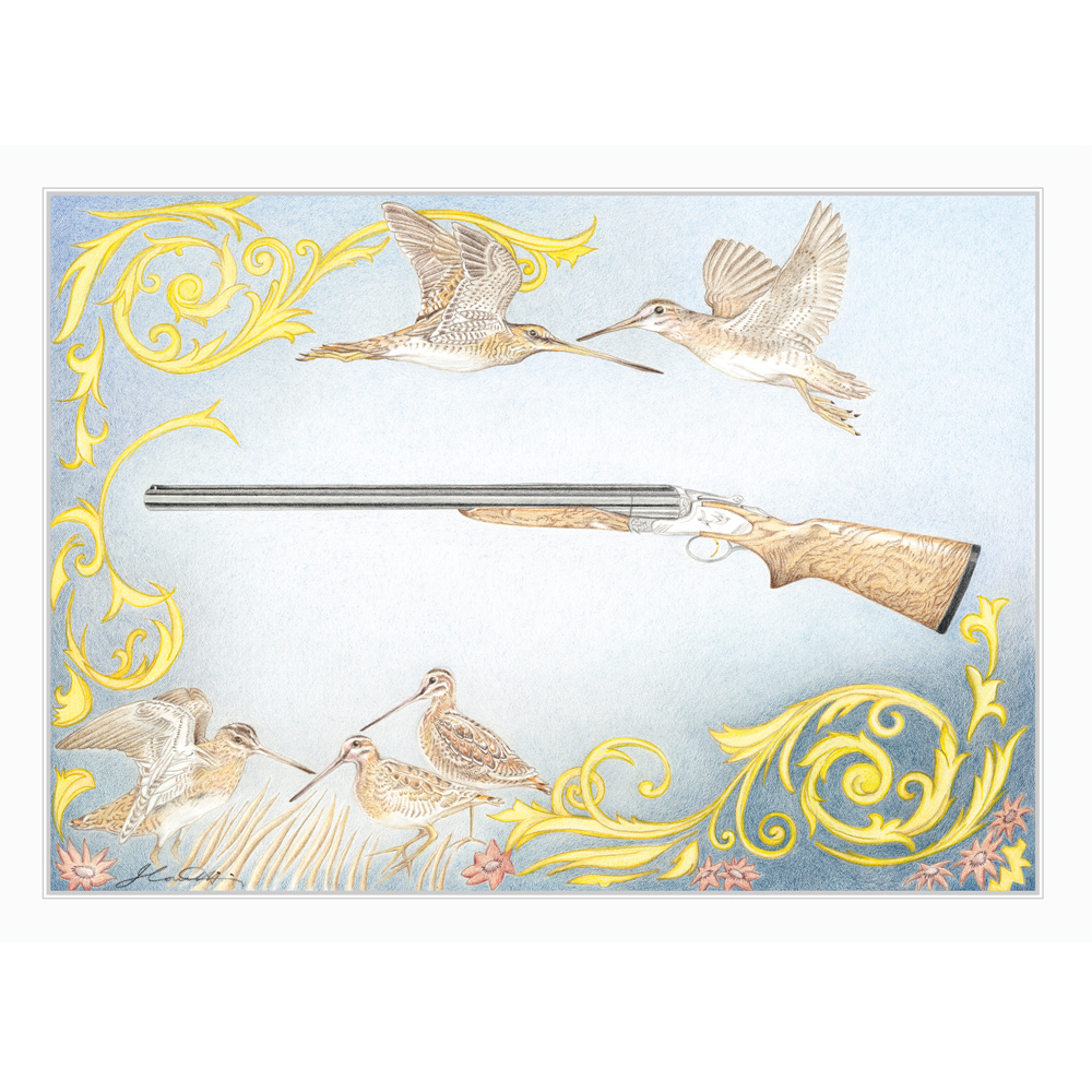 Timeless elegance of upland game and classic shotguns. Inspired by the textures and traditions of the countryside, bringing together the elusive grace of the Snipe and Woodcock with the enduring craftsmanship of a classic side-by-side shotgun.